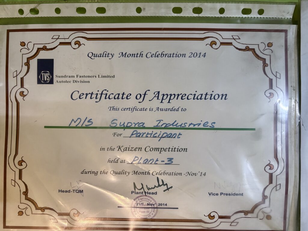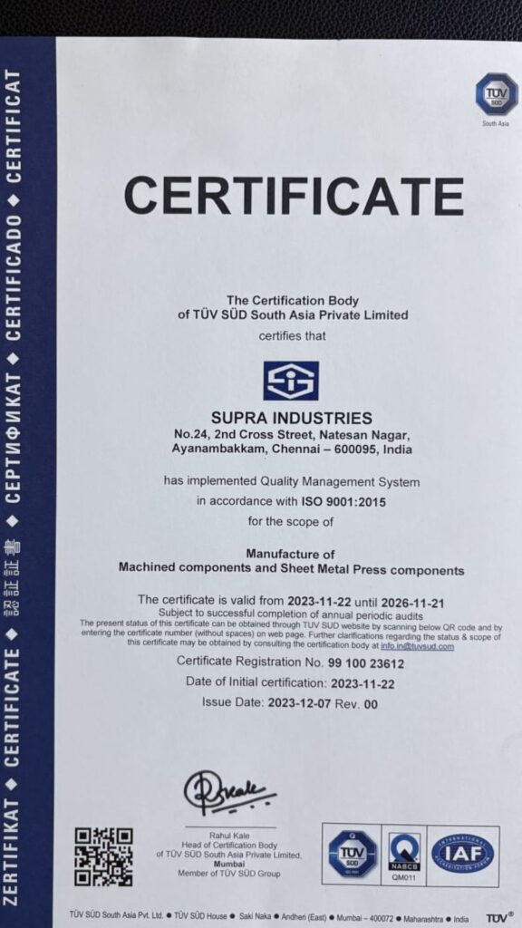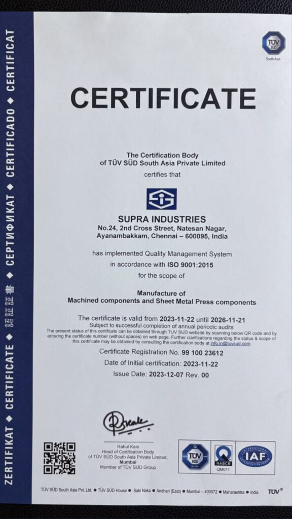 Supra Industries has been delivering precision-engineered components with a commitment to quality and reliability.